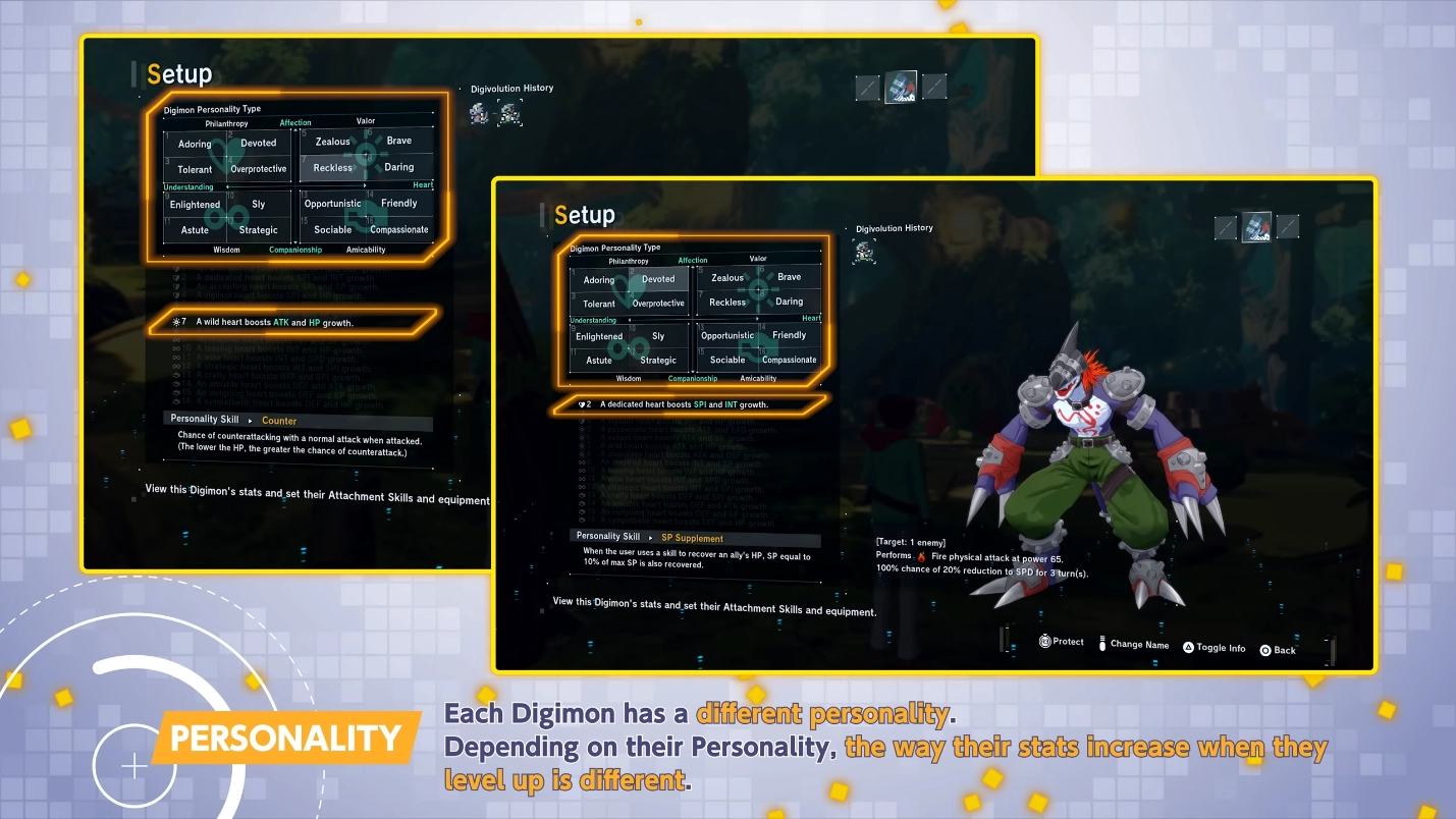 Each Digimon must reach certain conditions to Digivolve into other Digimon forms. The stats that grow the most can affect which Digivolutions they’ll be able to reach.