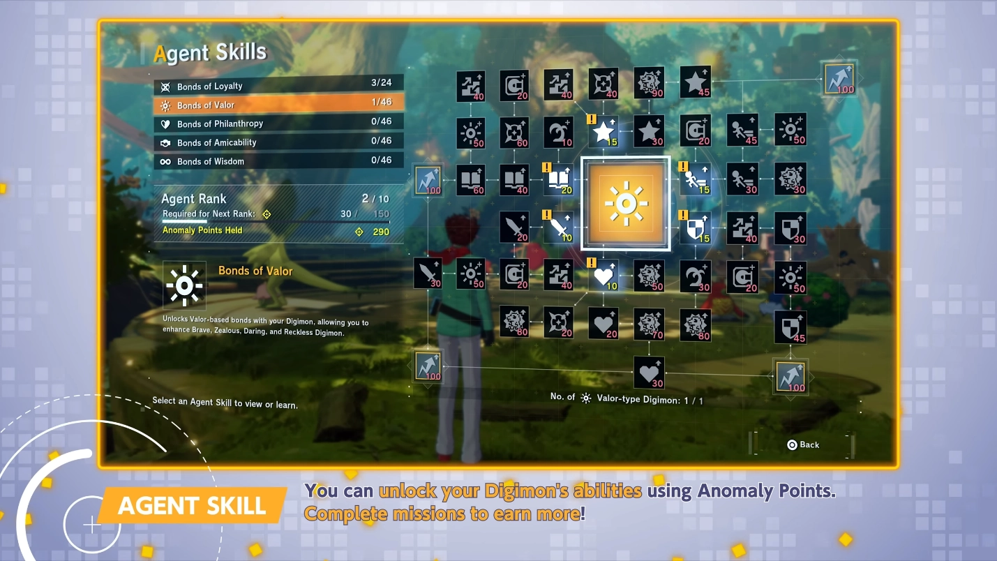 As an ADAMAS agent, you can also help your Digimon grow with Agent Skills. You can unlock your Digimon’s abilities using Anomaly Points. Complete missions to earn more!