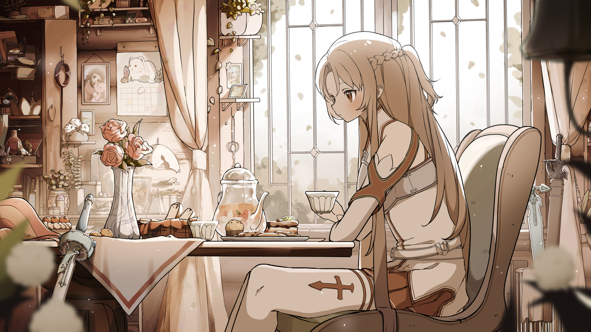 If you've been enjoying the LoFi playlist of SWORD ART ONLINE Fractured Daydream's OST, visit the virtual world any time from your desktop wallpaper with the LoFi Asuna artwork by Soyu (https://twitter.com/soyutrys).