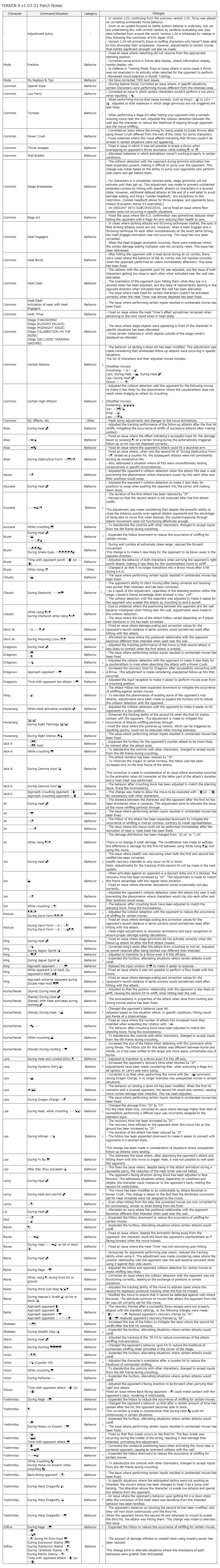 - Behavior/properties of moves will be adjusted for some characters.