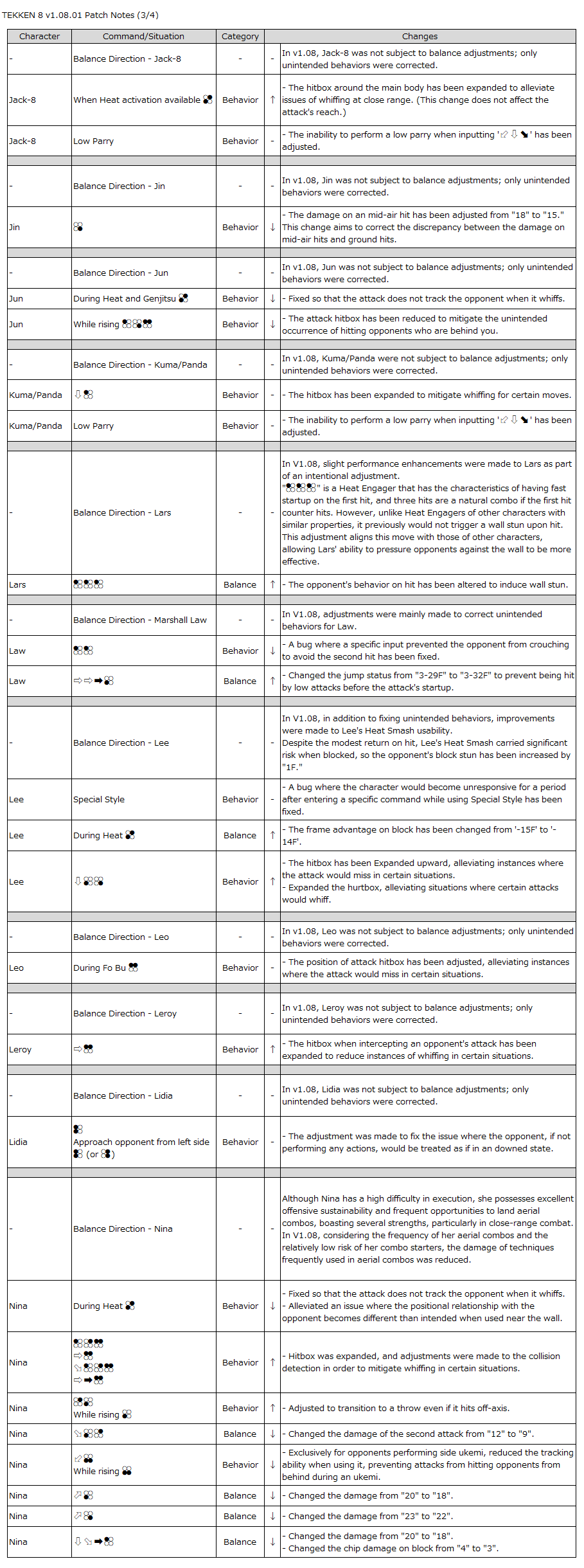 TEKKEN 8 Patch Notes v1.08.01
