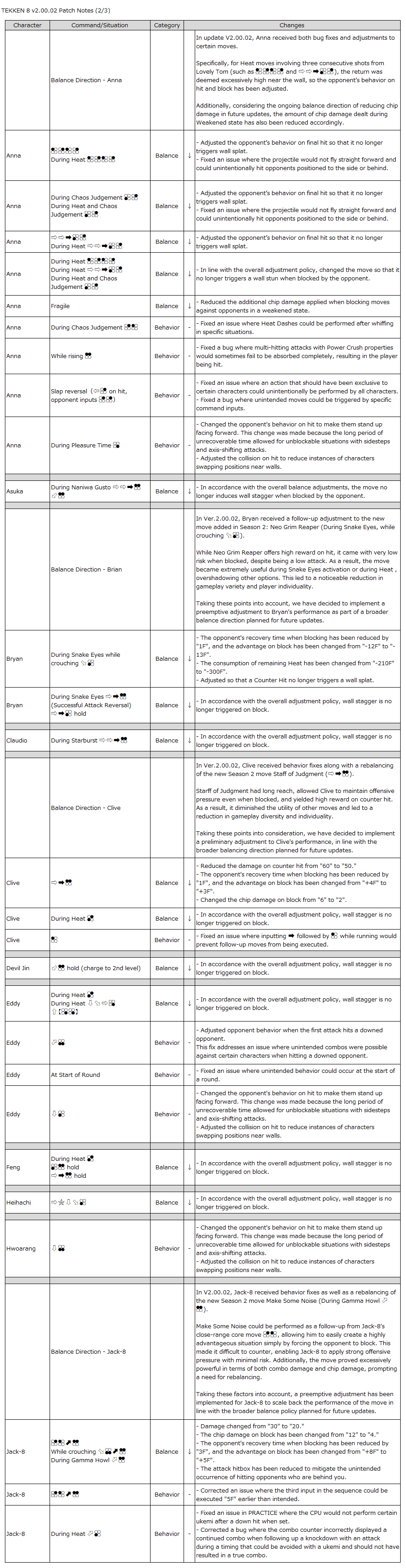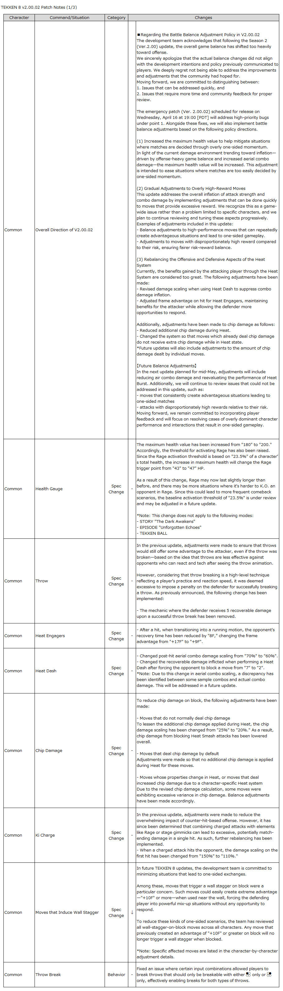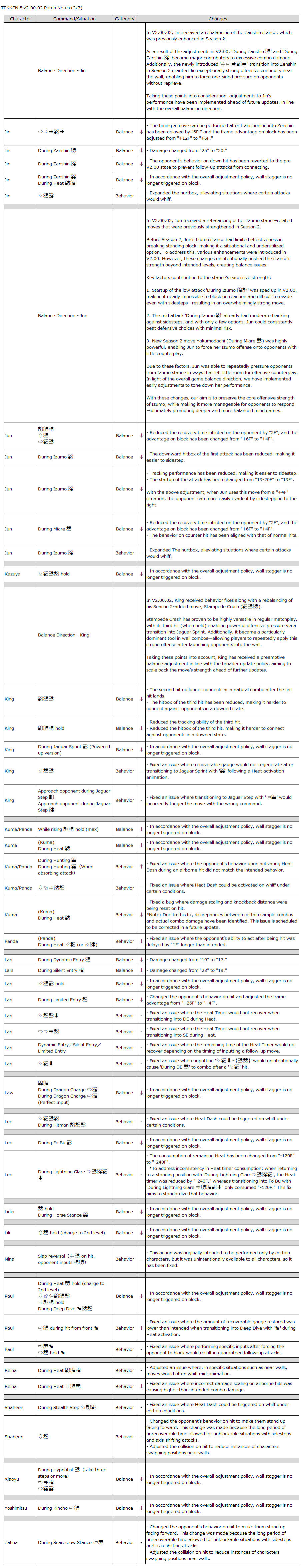 - Please refer to the following link for the future direction of Season 2 balance adjustments: https://www.tekken-official.jp/tekken_news/?p=1171